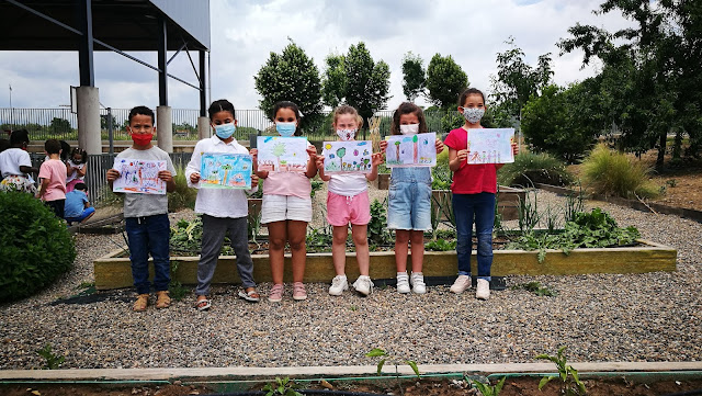 La primavera en el huerto con su luz y sus intensos colores ha servido de inspiración al alumnado de educación infantil y primaria para realizar sus expresiones plásticas relacionando esta estación del año con la naturaleza cercana del huerto escolar.