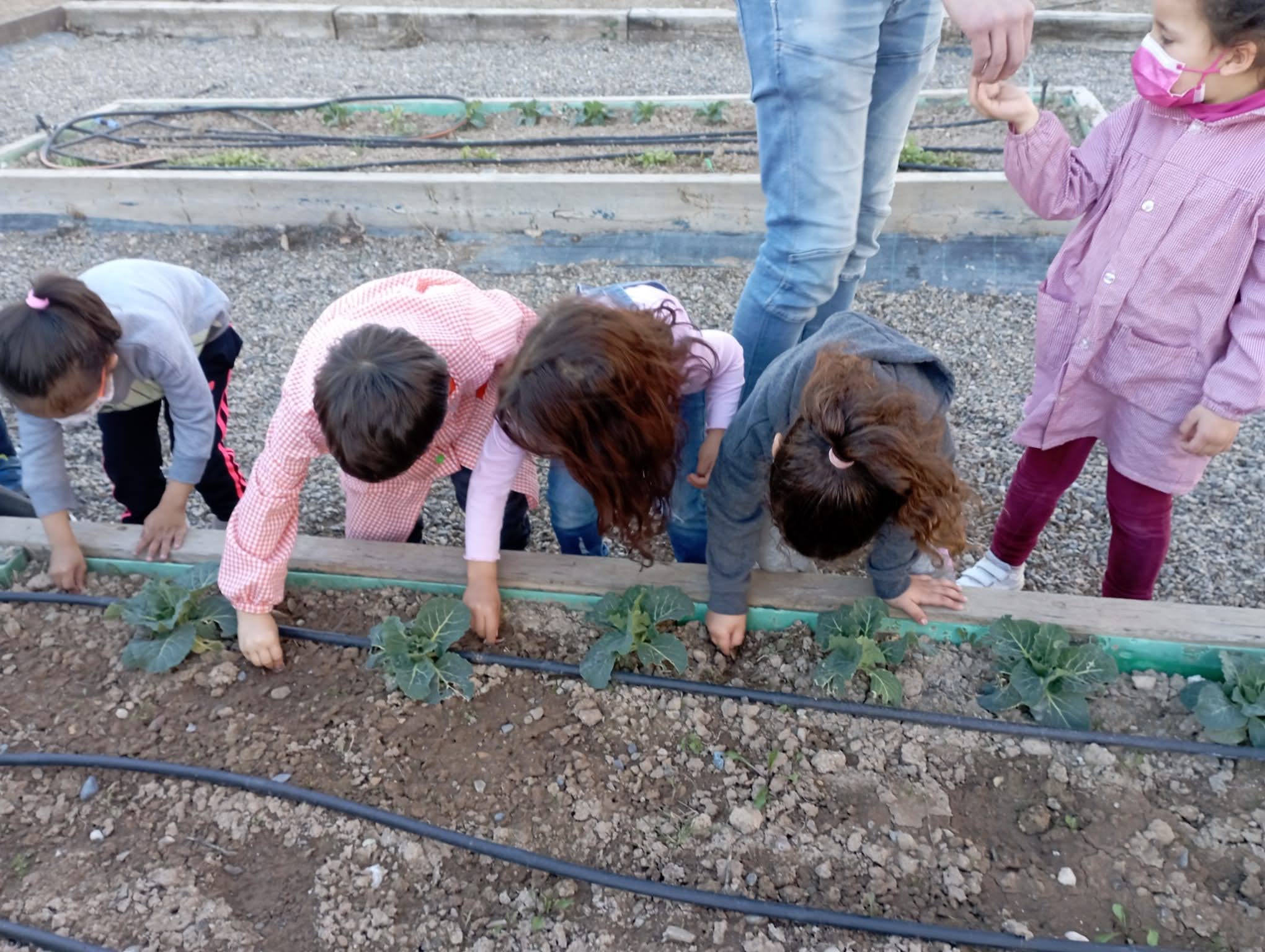 El alumnado de infantil y de primer ciclo quería realizar la siembra de ajos la última semana del mes de enero coincidiendo con la luna en cuarto menguante, no la pudieron realizar, ya que la tierra de los bancales estaba congelada debido a las bajas temperaturas que habíamos tenido durante la semana.